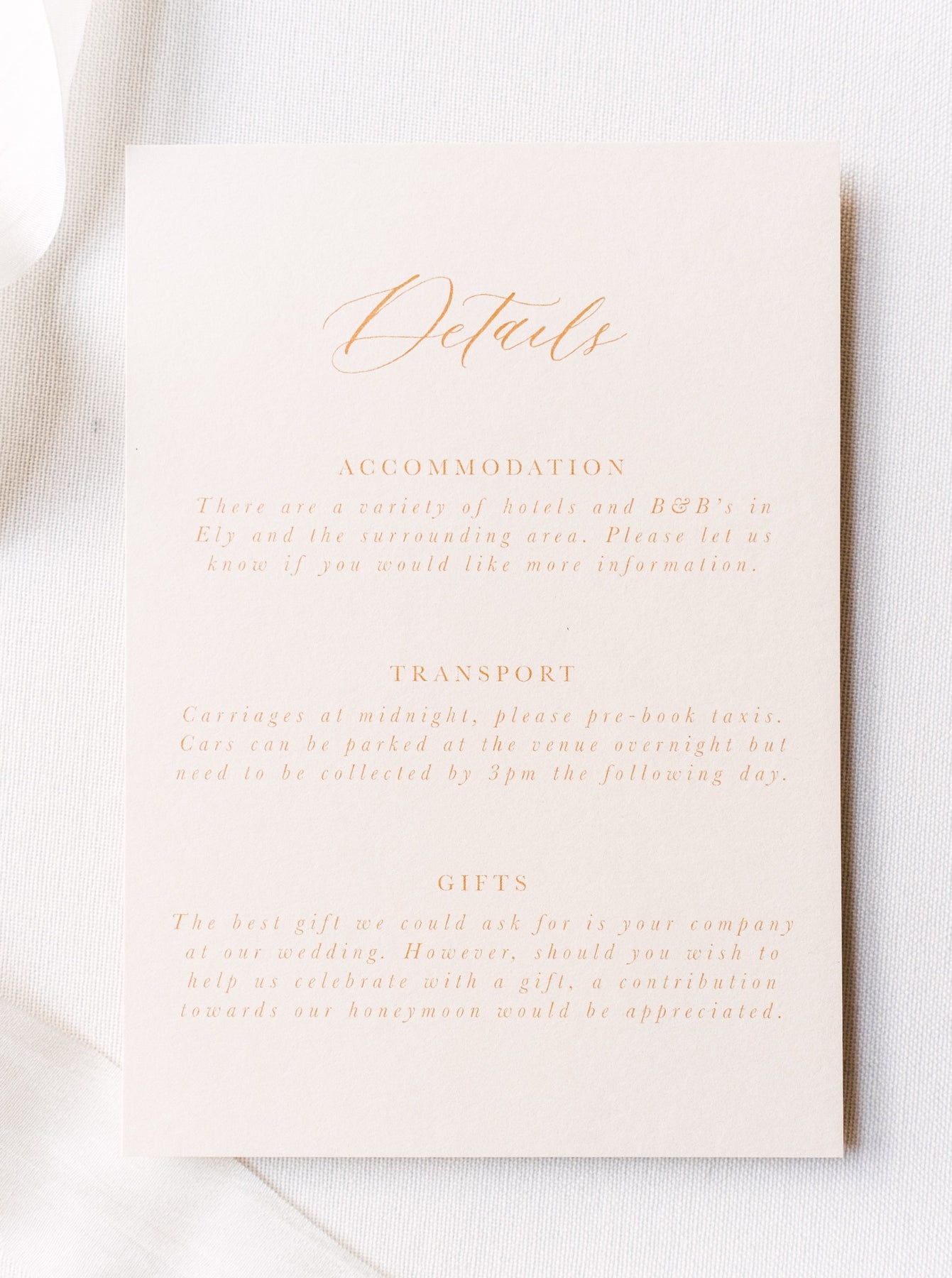3. Once you have placed your order, a wedding stationery customisation form will be sent to your email address for you to complete and return. This is where you will confirm your colour choices, details and required stationery wording.