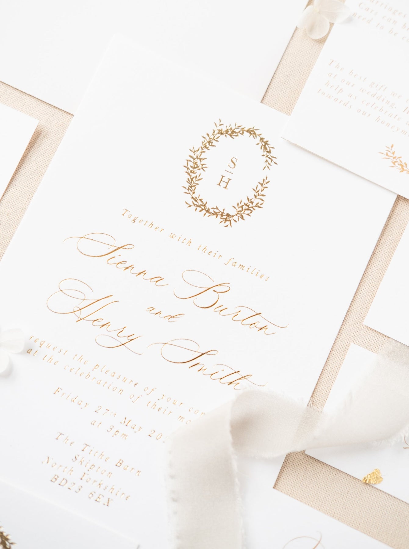 The paper and ink/foil colours are completely customisable to suit your colour scheme. Simply select the printing method and quantity and add to the cart and once you've placed your order we’ll be in touch within 2 working days for your paper and ink/foil colour choices and the final wording for your stationery.