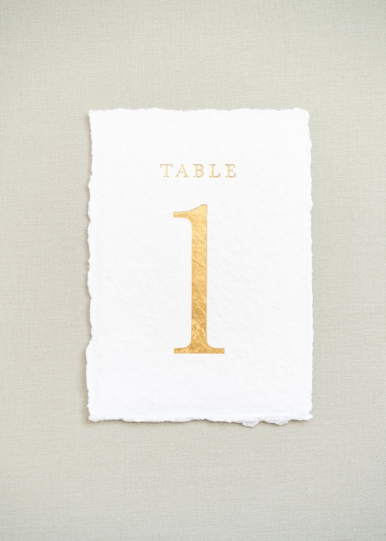 white handmade paper and gold foil table number 1